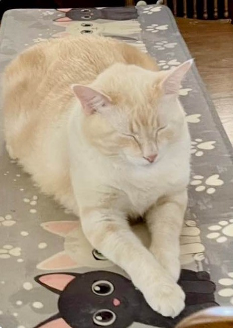 Meet Mocha, a stunning Siamese Bobtail and one of Maggie’s handsome sons. A true natural in front of the camera, he has even been a model in calendar cat contests! Beyond his good looks, he is a very loving and affectionate companion.